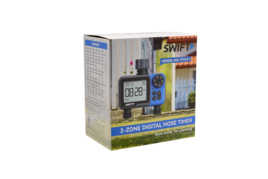 تحكّم ذكي بري منطقتين في نفس الوقت بكل سهولة. جهاز توقيت أوتوماتيكي يعمل على تنظيم مواعيد الري بدقة، يساعد على توفير المياه والحفاظ على صحة النباتات دون تدخل يدوي. مثالي للحدائق المنزلية، الأحواض، وأنظمة الري بالتنقيط.